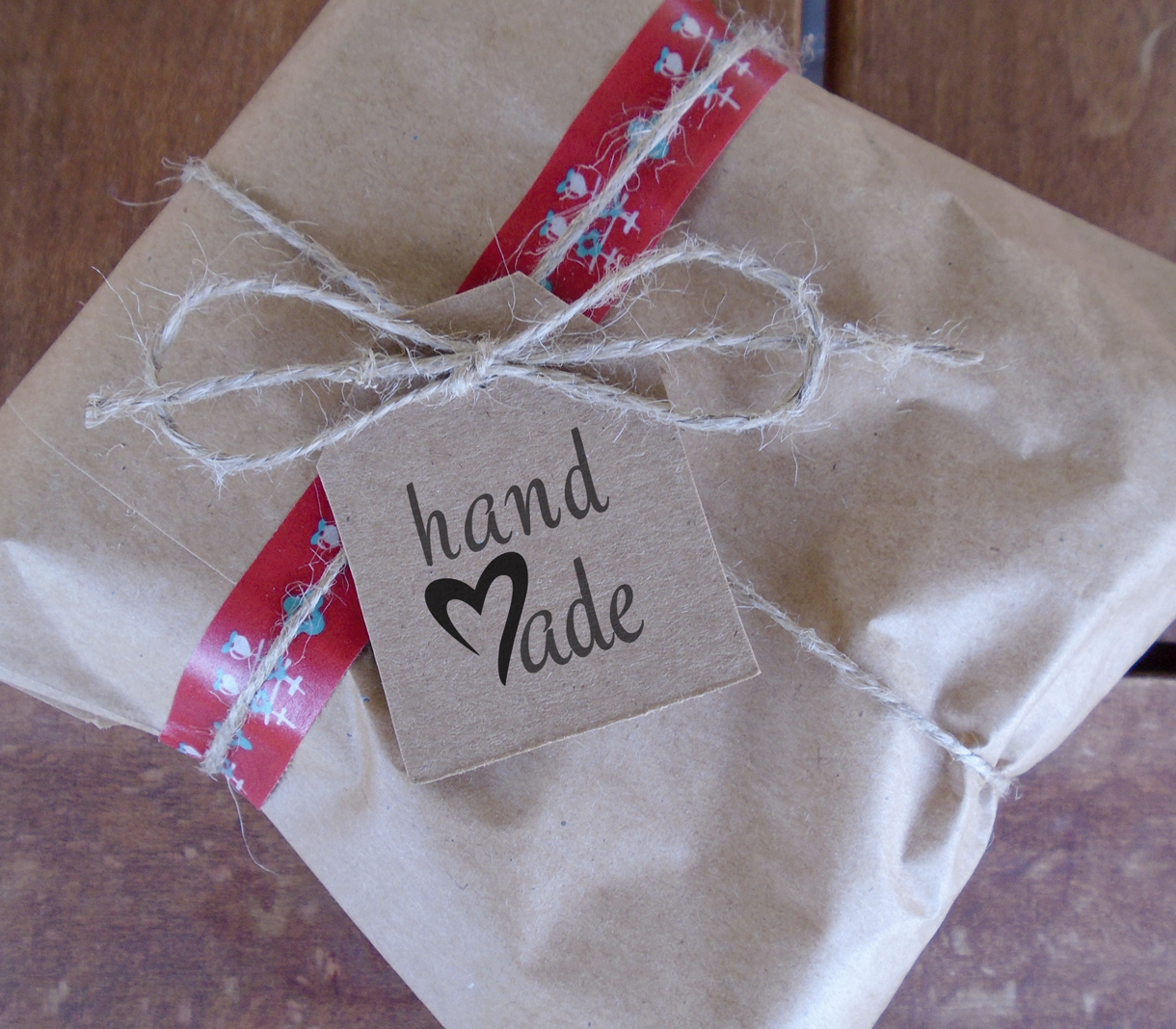 The "handmade" gift tags are available on 2 different color combinations,