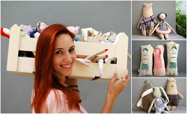 your instincts. I trusted their "knowledge" and let it go. I was making dolls for friends, for me and later for my kids, I was making ... and making many things. One day I wanted to recycle a useless armchair from IKEA - I try to support recycling & upcycling- so I used the fabric and the stuffing. In a few hours I created with my kids, as creative play, a fabric doll, which still wanders around our house. And then I made more... As I walked into this world, I was charmed! And so ... abra cadabra! My studies and my job helped me to grow aesthetics and my concern to exist in a creative "world". The Abracadabra & stuff is nothing more than the natural evolution of all these years of me experimenting and 'using' my hands. My studio table is located in the most private room in the house. No, not in the bathroom ... in the bedroom! It is a matter of time to remove the bed ... or me! I have a patient man but I think one of the next times that will hear me sewing with the sewing machine in the middle of the night he will sew my fingers! (In collaboration with a neighbor).